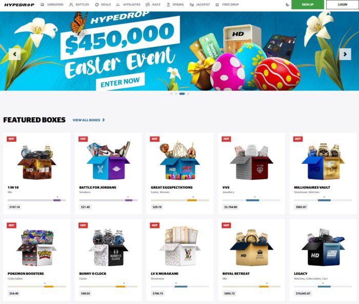 HypeDrop is a gamified e-commerce platform that lets you buy virtual mystery boxes and open them online to win real-world items. Think of it like a loot box from a video game – except the stuff you win can actually show up at your front door.